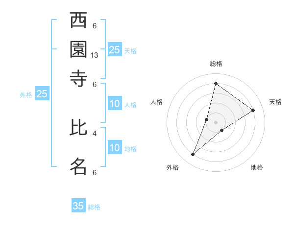 西園寺 比名さんの外格は25画の4点!