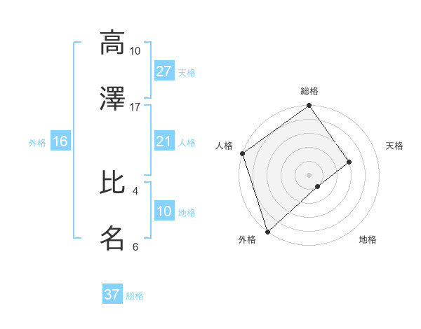 高澤 比名さんの総格は37画の5点!