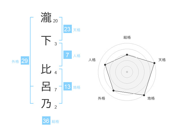 瀧下 比呂乃さんの天格は23画の5点!