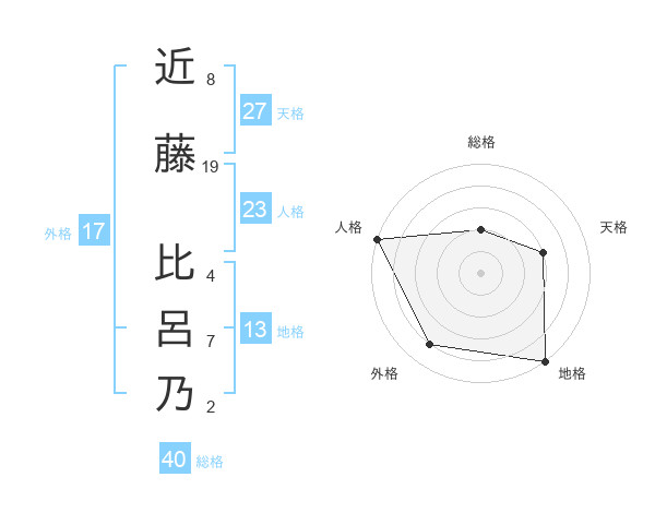 近藤 比呂乃さんを姓名の画数から五運を鑑定