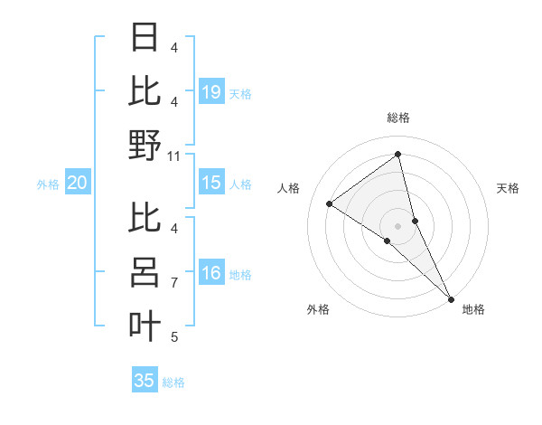 日比野 比呂叶さんを姓名の画数から五運を鑑定