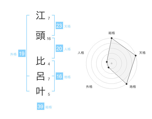 江頭 比呂叶さんを姓名の画数から五運を鑑定