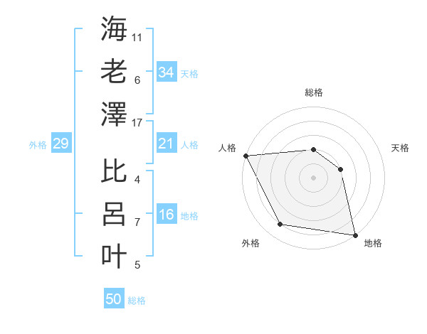 海老澤 比呂叶さんを姓名の画数から五運を鑑定