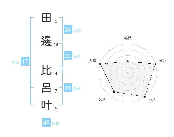 田邊 比呂叶さんの天格は24画の5点