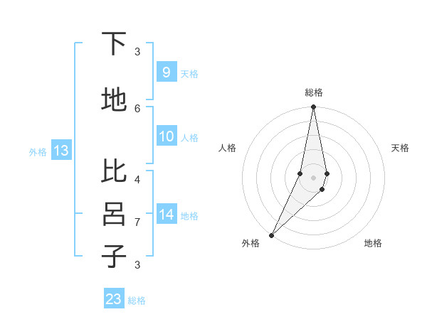 下地 比呂子さんを姓名の画数から五運を鑑定