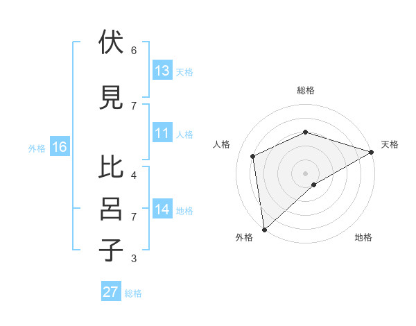 伏見 比呂子さんの外格は16画の5点!