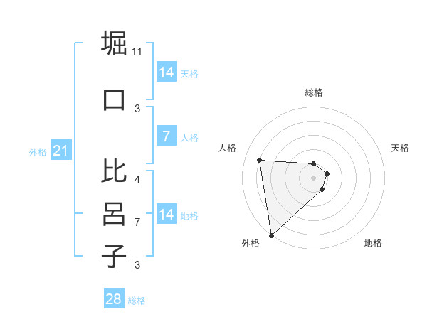 堀口 比呂子さんを姓名の画数から五運を鑑定