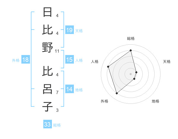 日比野 比呂子さんを姓名の画数から五運を鑑定