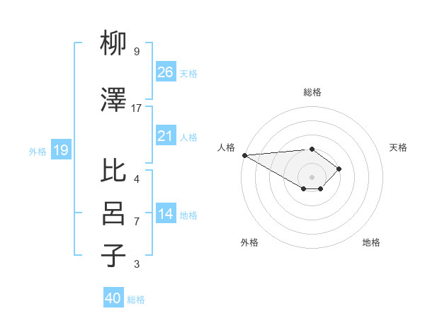 柳澤 比呂子さんを姓名の画数から五運を鑑定