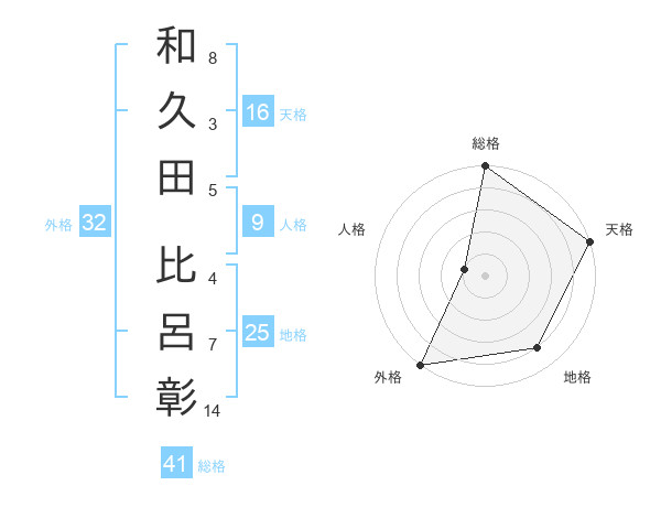 和久田 比呂彰さんを姓名の画数から五運を鑑定