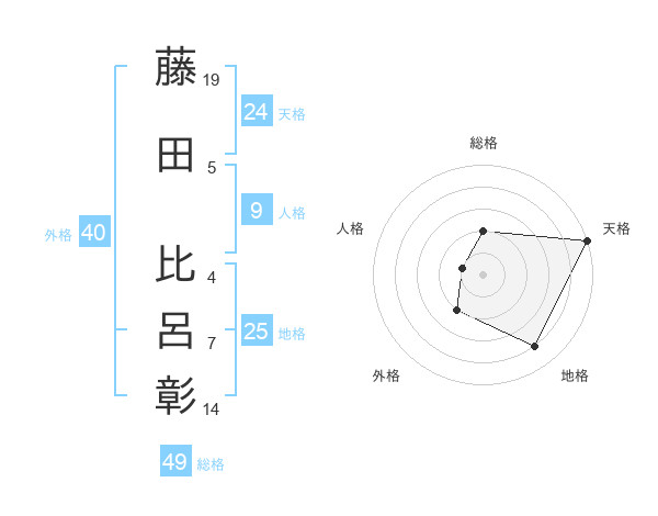 藤田 比呂彰さんの天格は24画の5点