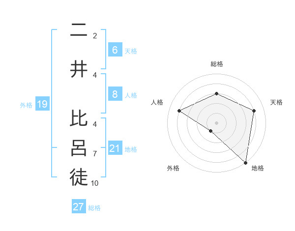 二井 比呂徒さんの総格は27画の3点!