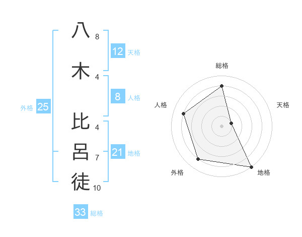八木 比呂徒さんを姓名の画数から五運を鑑定