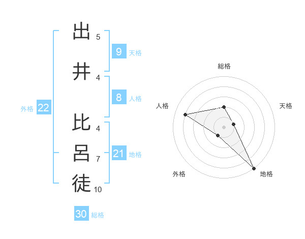 出井 比呂徒さんの外格は22画の1点!