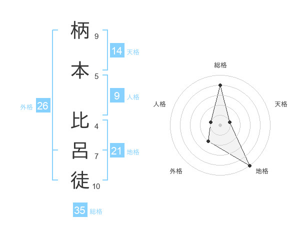 柄本 比呂徒さんを姓名の画数から五運を鑑定