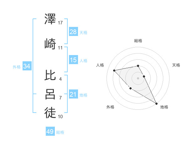 澤崎 比呂徒さんの総格は49画の2点!