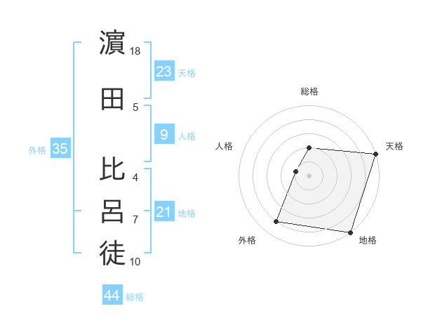 濵田 比呂徒さんの総格は44画の2点!
