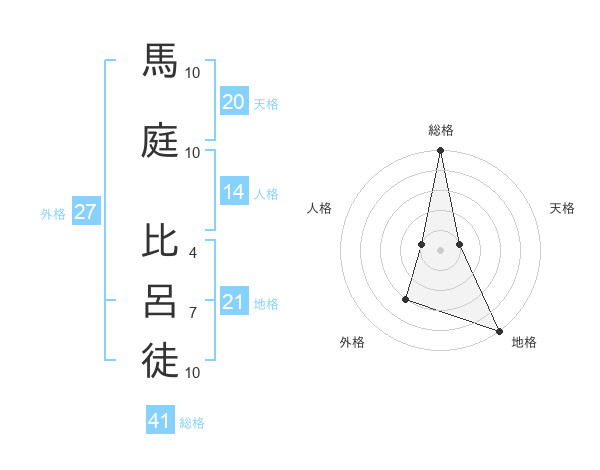 馬庭 比呂徒さんの総格は41画の5点!