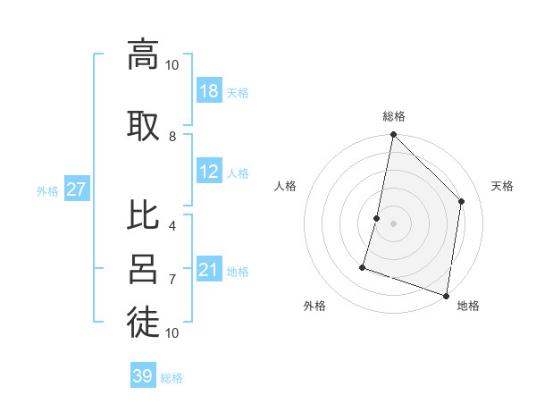 高取 比呂徒さんを姓名の画数から五運を鑑定