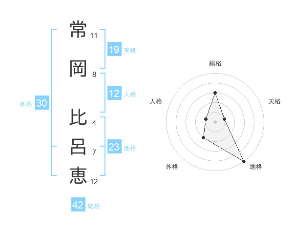 常岡 比呂恵さんを姓名の画数から五運を鑑定