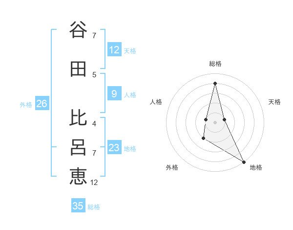 谷田 比呂恵さんを姓名の画数から五運を鑑定