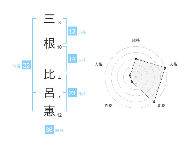 三根 比呂惠さんを姓名の画数から五運を鑑定