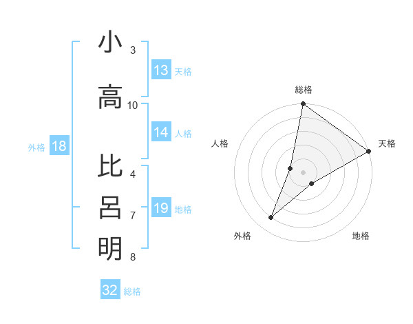 小高 比呂明さんの総格は32画の5点!