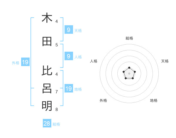 木田 比呂明さんを姓名の画数から五運を鑑定