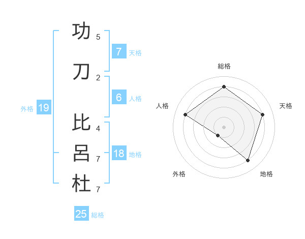 功刀 比呂杜さんの総格は25画の4点!
