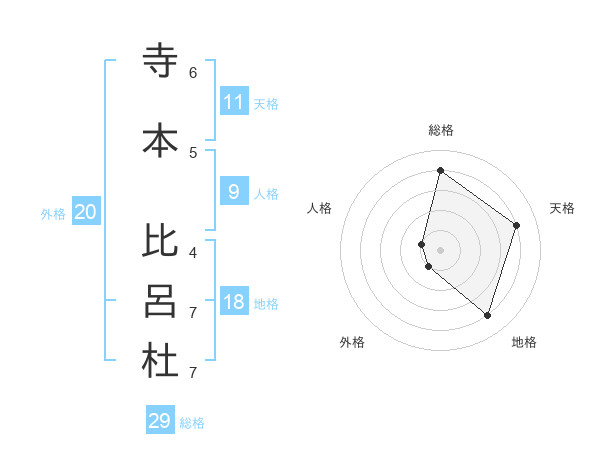 寺本 比呂杜さんを姓名の画数から五運を鑑定