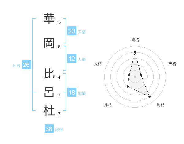 華岡 比呂杜さんの総格は38画の4点!