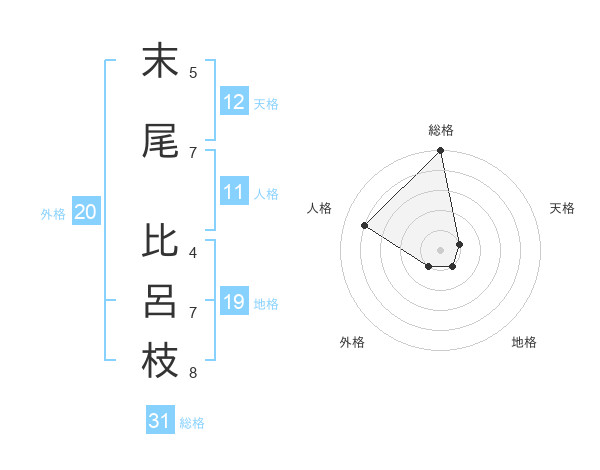 末尾 比呂枝さんの総格は31画の5点!