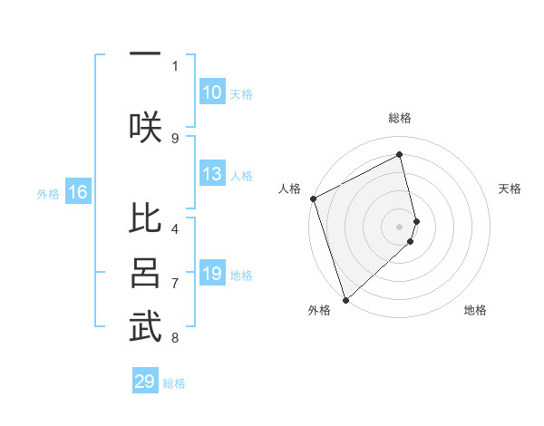 一咲 比呂武さんを姓名の画数から五運を鑑定