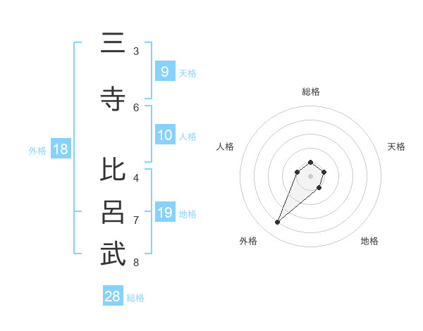 三寺 比呂武さんの総格は28画の1点!