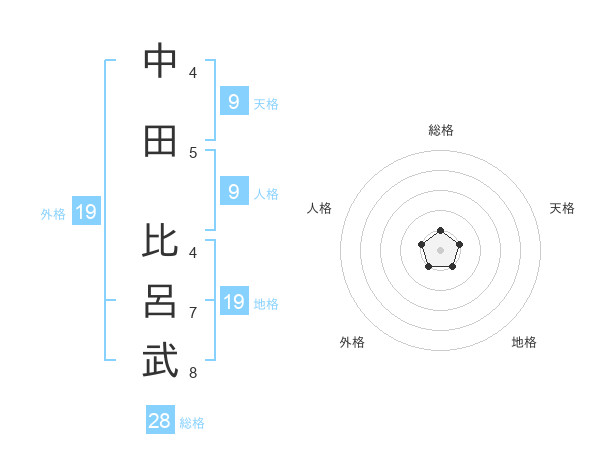 中田 比呂武さんを姓名の画数から五運を鑑定
