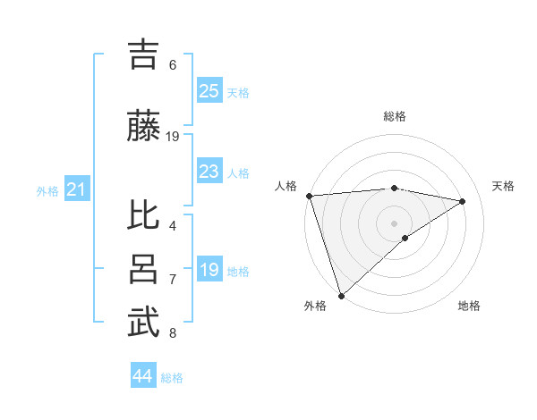 吉藤 比呂武さんを姓名の画数から五運を鑑定