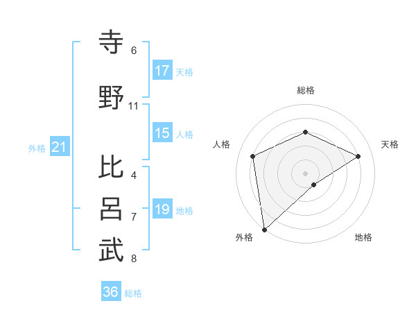 寺野 比呂武さんを姓名の画数から五運を鑑定