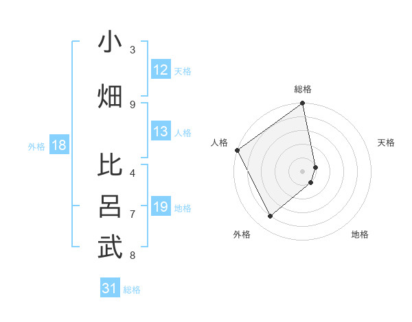 小畑 比呂武さんを姓名の画数から五運を鑑定