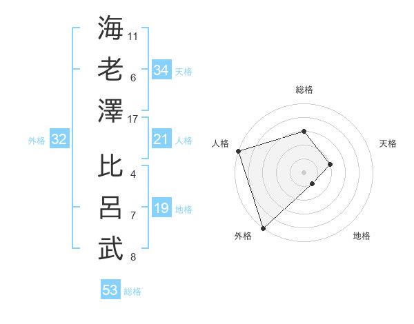 海老澤 比呂武さんの人格は21画の5点!