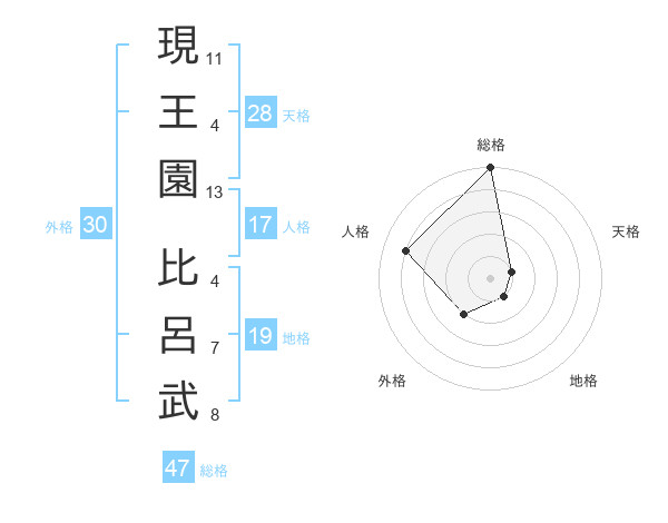 現王園 比呂武さんを姓名の画数から五運を鑑定