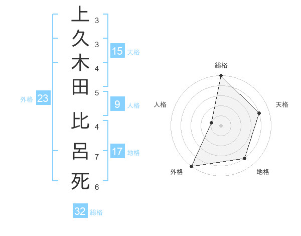 上久木田 比呂死さんを姓名の画数から五運を鑑定