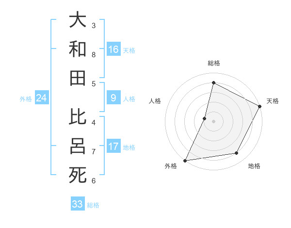 大和田 比呂死さんを姓名の画数から五運を鑑定