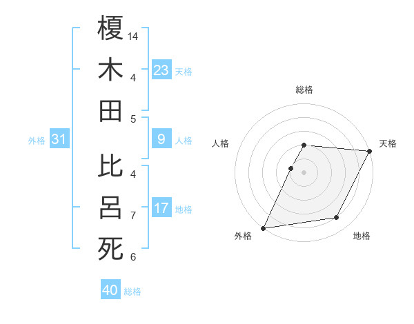 榎木田 比呂死さんを姓名の画数から五運を鑑定