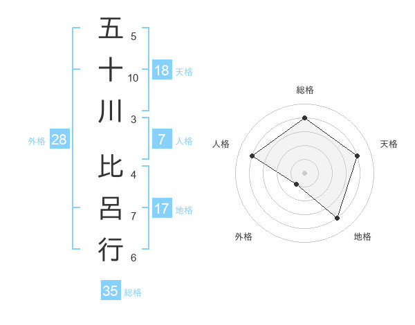 五十川 比呂行さんを姓名の画数から五運を鑑定