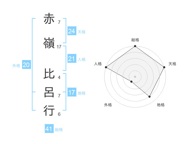 赤嶺 比呂行さんの天格は24画の5点!