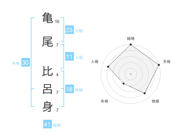 亀尾 比呂身さんの総格は41画の5点!