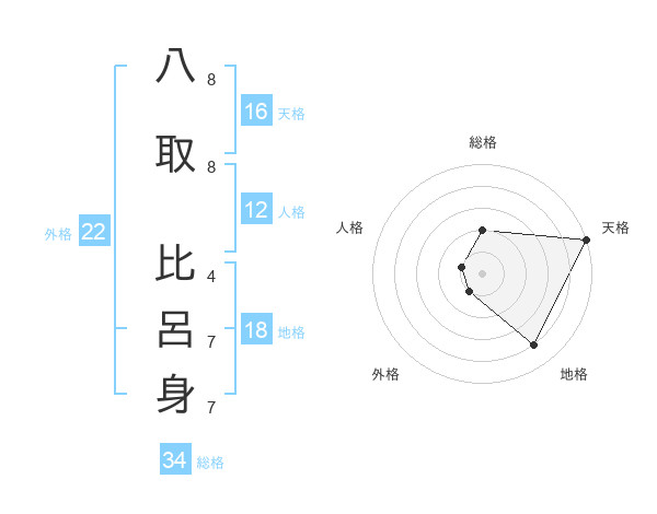 八取 比呂身さんの総格は34画の2点!