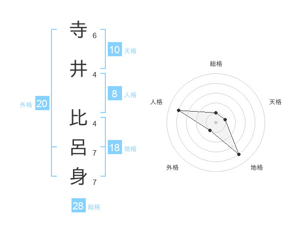 寺井 比呂身さんを姓名の画数から五運を鑑定
