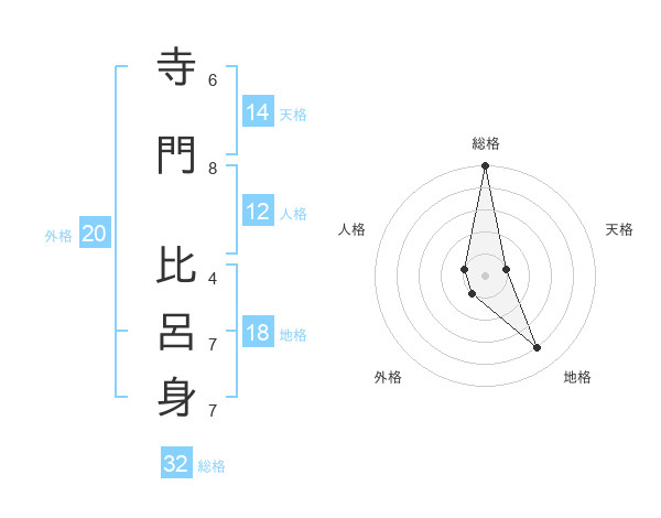 寺門 比呂身さんの総格は32画の5点!