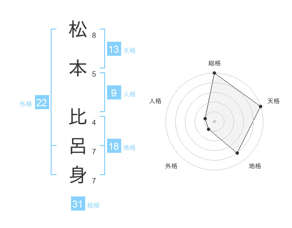松本 比呂身さんを姓名の画数から五運を鑑定